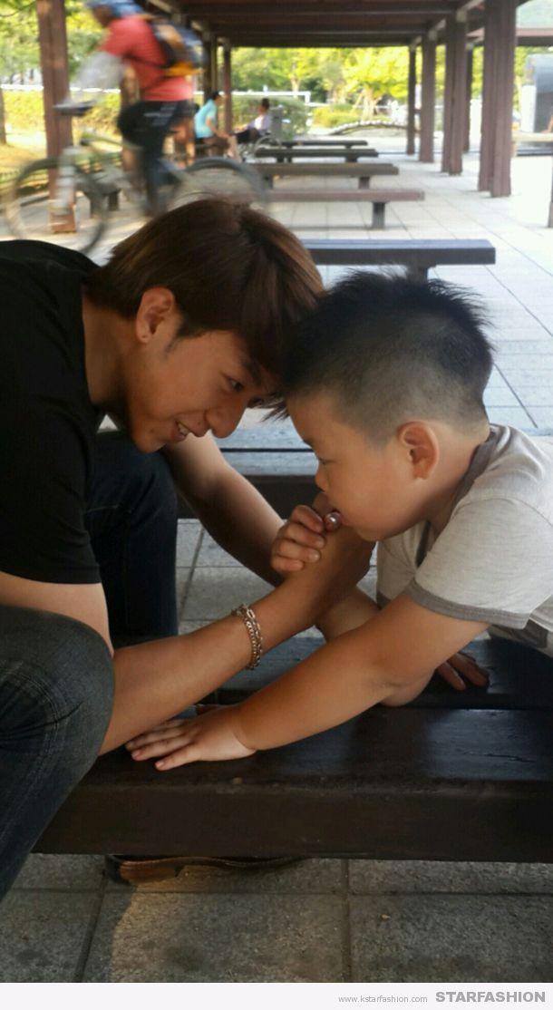 공개된 사진에는 이정신과 조카가 팔씨름하는 모습이 담겨 있다. 장난스러운 표정으로 이를 악 문 이정신과 조카의 표정이 웃음을 자아낸다.