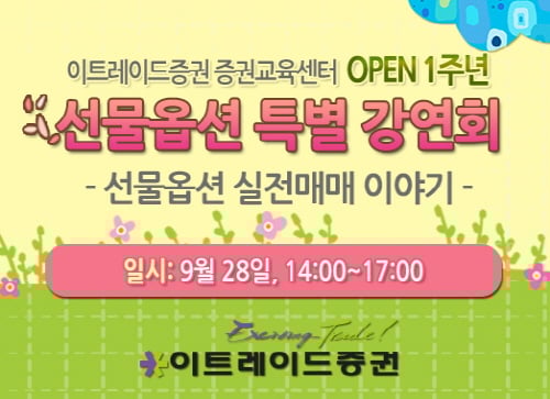이트레이드증권 증권교육센터 담당자는 “센터 오픈 1주년을 기념으로 마련된 특별강연회는 선물옵션 투자자에게 실전매매에 필요한 유익한 정보를 제공하는 자리가 될 것”이라고 말했다.