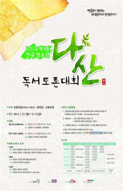 오는 7월21일부터 개최될 '제3회 전국 청소년 다산 독서토론대회'도 이런 점에서 의미가 통한다.