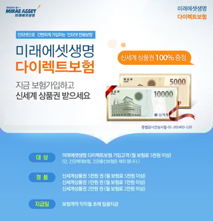 미래에셋생명 다이렉트, 가입하면 상품권 덤으로
