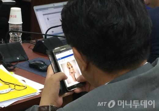 국회 환경노동위원회 여당 간사인 권 의원은 지난 8일 밤 9시쯤 정부세종종합청사에서 진행된 고용노동부 국감장에서 스마트폰을 이용해 비키니를 입은 외국 여성 사진을 봤다.