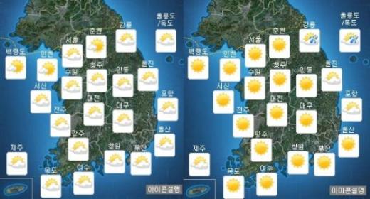 | 오늘(6일) 오전(왼쪽)·오후 날씨 /제공=기상청 |