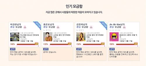 생일이나 결혼기념일 등 특별한 날에는 션과 정혜영 부부처럼 의미있는 일을 해보는 건 어떨까. 이런 특별한 날에 기부활동을 쉽게 하도록 도와주는 포털사이트가 있다. '비카인드'(bekind)가 바로 그것이다. 이 사이트는 생일에 친구나 지인에게 선물이 아닌 후원모금을 할 수 있는 서비스를 제공한다. 비카인드를 통해 누구나 자신의 이름을 걸고 모금함을 만들 수 있으며 이를 통해 조성된 기부금은 공익단체로 전달돼 공익프로젝트에 사용된다.