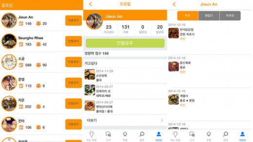 나와 음식을 먹는 취향이 비슷한 사람을 찾는다면 더욱 맛집 찾기가 수월해질 것이다. 주로 먹는 음식이 비슷한 이들을 팔로우하면 그 사람이 업로드한 정보를 확인할 수 있으며, 특정 지역에서 앱을 실행했을 때에는 검색 리스트에 우선순위로 나와 더욱 효율적으로 활용할 수 있다.