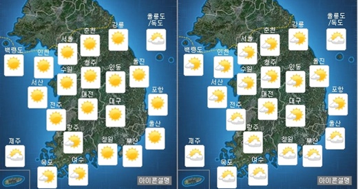 | 5일 오전(왼쪽), 오후 날씨 /제공=기상청 |