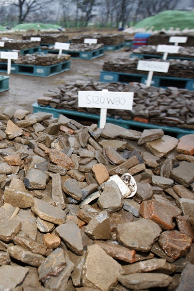 | '신라왕궁 발굴' 국립경주문화재연구소가 18일 오전 경북 경주시 월성의 시굴조사 중 토기와 기와편 등이 발견된 장소를 공개하고 있다. /사진=뉴스1 |