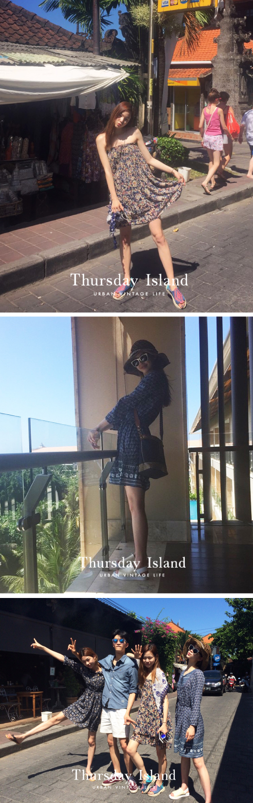 써스데이 아일랜드는 이번 시즌 트렌드 아이템 중 하나인 보헤미안 원피스를 식물, 꽃들을 이용한 에스닉 패턴을 기본으로 하여, 긴 소매부터 슬리브리스, 튜브까지 다양하게 출시했다.