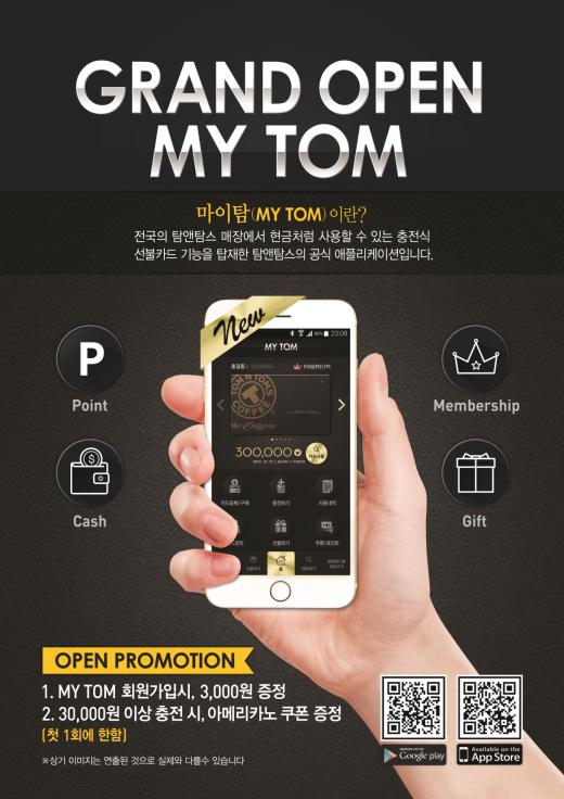 두 번째 ‘꿀팁’은 모바일 선불카드 애플리케이션 ‘마이탐’ 이용이다. 탐앤탐스는 ‘마이탐’ 출시를 기념하는 프로모션을 진행 중이다. 회원 가입 시 회원 가입 시 3천원의 선불카드가 자동 발급되며 첫 3만원 충전 시 아메리카노 Tall 사이즈 무료 쿠폰을 증정한다.