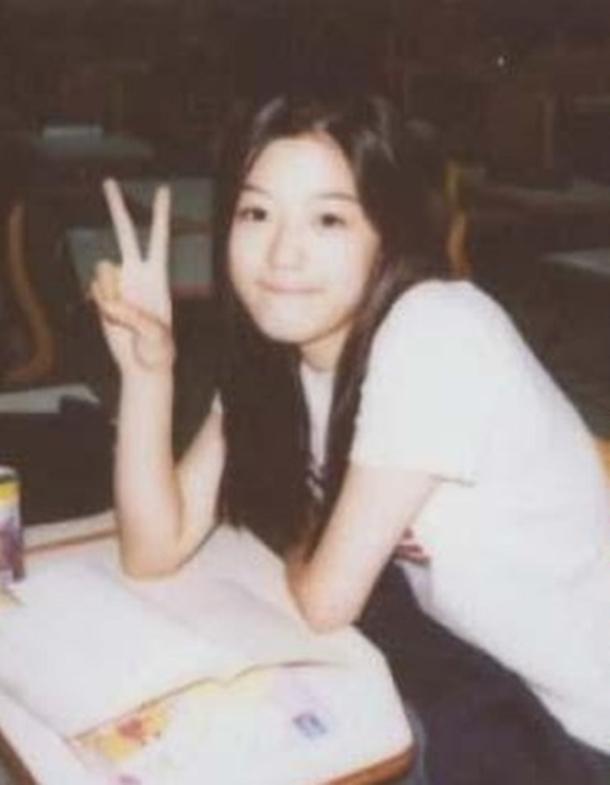게재된 사진 속 전지현은 강의실에 앉아 사진을 찍은 여대생 전지현은 찰랑거리는 긴 생머리를 뽐내며 V자를 그리고 있다.
