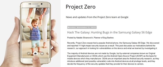 구글의 보안분석팀인 '프로젝트 제로'는 지난 2일 공식 블로그를 통해 보안 전문가들이 갤럭시S6 엣지 내부 소프트웨어를 검토한 지 1주일 만에 11개의 보안 문제점이 발견됐다고 밝혔다.