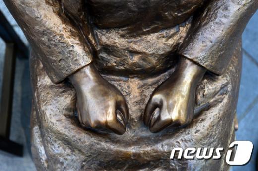 | '위안부 불가역적 해결' 서울 중학동 주한일본대사관 앞에 놓인 위안부 소녀상. /자료사진=뉴스1 |