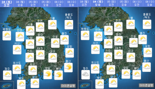 | 오늘(4일) 오전·오후 날씨. /자료=기상청 |