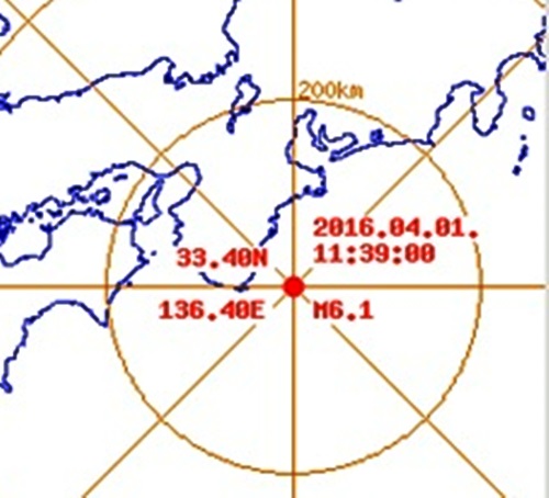 1일 일본 기상청에 따르면, 이날 오전 11시 39분께 일본 혼슈 서부 근해에서 규모 6.1의 강진이 발생했다. 진원은 미에현 남부 근해의 북위 33.4도, 동경 136.4도 지점이다.