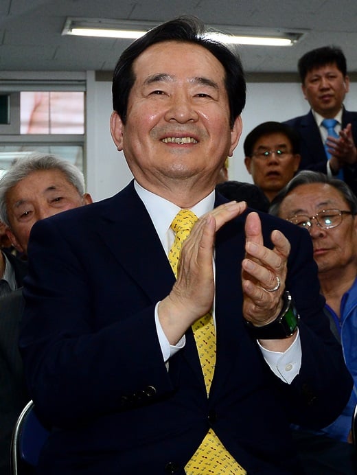 | 4·13총선 출구조사 결과 오세훈 새누리당 후보를 따돌리고 크게 앞선 정세균 더불어민주당 후보가 13일 오후 자신의 선거사무소에서 선거방송을 보며 환하게 웃고 있다. /사진=뉴스1 |