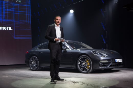 | 올리버 블루메 포르쉐 AG 이사회 회장이 28일(현지시간) 신형 파나메라를 소개하고 있다 /사진=포르쉐 제공 |