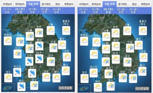 | 오늘(28일) 오전·오후 날씨. /자료=기상청 |