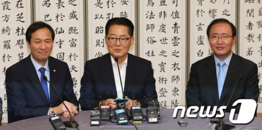 | 해임건의안. 더민주 우상호·국민의당 박지원·정의당 노회찬 원내대표(왼쪽부터). /자료사진=뉴스1 |