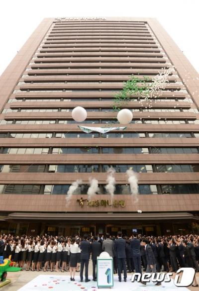 | KEB하나은행 채용. 지난해 9월 서울 중구 KEB하나은행 본사에서 현판 제막식을 하고 있다. /자료사진=뉴스1 |