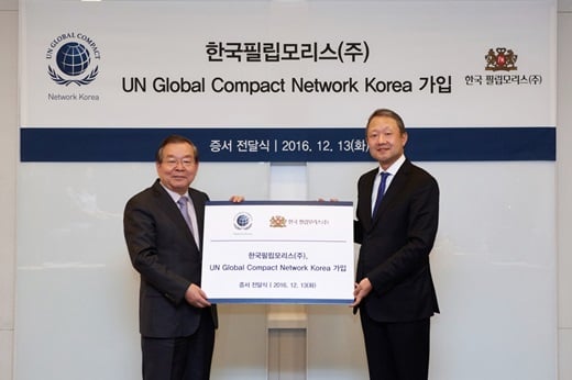 UNGC는 유엔이 채택한 인권, 노동, 환경, 반부패 4대 분야 10대 원칙을 기업의 전략과 운영에 내재화시켜 이행하도록 권장하는 유엔기구다. 지난해 필립모리스 인터내셔널(PMI)이 UNGC 본부에 가입한데 이어 올해는 한국필립모리스도 UNGC 한국협회에 가입했다.