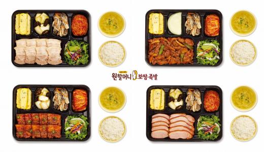 대표메뉴는 담백하고 부드러운 보쌈에 매일 담가 아삭한 김치를 곁들인 원할머니 정통메뉴인 ‘보쌈정식’(8,000원) 도시락과 숯불향과 매콤한 향이 어우러져 입안 가득 풍성함을 즐길 수 있는 ‘제육볶음정식’(7,000원) 도시락이다.