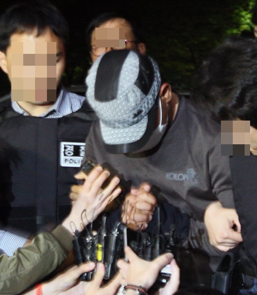 | 경산 농협 강도 사건 용의자 김씨가 지난 22일 오후 경북 경산경찰서로 압송되고 있다. /사진=뉴시스 |