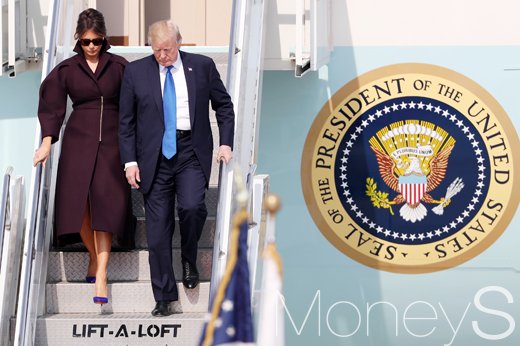[머니S포토] '에어포스원'서 내리는 트럼프 대통령 부부