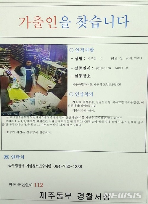 제주 동부경찰서는 지난 4일 오후 4시께 제주시 도남동의 한 편의점 폐쇄회로(CC)TV 영상을 끝으로 소재가 불명확한 박주선씨(28·여)에 대한 수색에 나섰다고 8일 밝혔다.