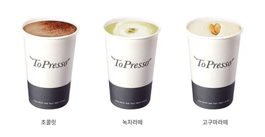 토프레소는 매일 마셔도 부담 없는 신선한 커피로 15년째 고객들에게 많은 사랑을 받고 있으며, 시즌별 다양한 메뉴를 선보이고 있다. 토프레소의 따뜻한 음료는 프랜차이즈 전국 가맹점에서 만나볼 수 있다.
