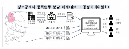 올해 1월 1일부터 길게는 수개월씩 소요되던 가맹본부의 정보공개서 등록업무를 공정위로부터 서울, 인천, 경기 등의 3개 지자체가 이양 받아 분담 처리한다. 타 지역에 비해 가맹본부 수가 많은 서울지역의 업체들은 서울시가 전담해서 등록업무를 추진함에 따라 좀 더 빠른 서비스를 받을 수 있게 된다.