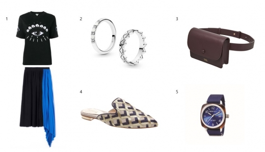 컬러감 있는 룩에 패턴이 돋보이는 뮬을 스타일링하면 발랄하면서도 산뜻한 분위기 형성이 가능하다. 여기에 실버 반지와 간단한 소지품을 챙길 수 있는 벨트백은 세련되면서도 유니크한 스타일을 완성시켜준다. 특히 룩의 포인트 컬러와 손목 시계 컬러를 맞춘다면 패션 센스를 뽐낼 수 있다.