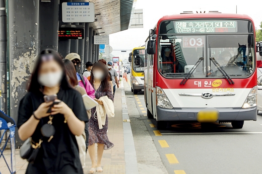 | 지난 2일 사회적 거리두기 2단계로 격상된 광주에서 시민들이 마스크를 쓰고 지나가고 있다./사진=뉴스1 허단비 기자 |