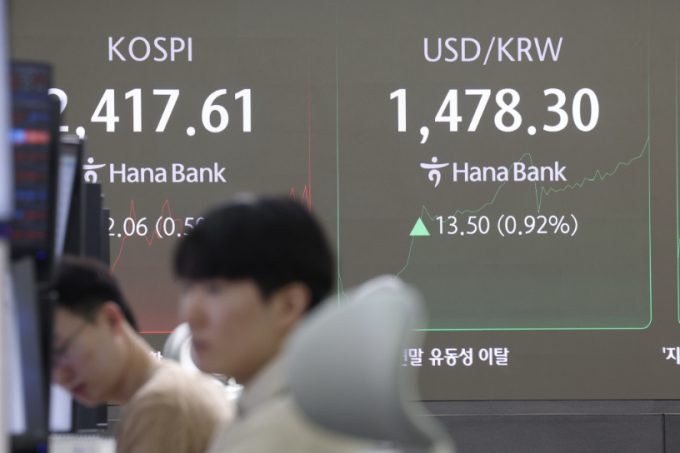 '고환율 쇼크' 코스피 2410대 후퇴… 외인 등 1100억원대 팔자 행진