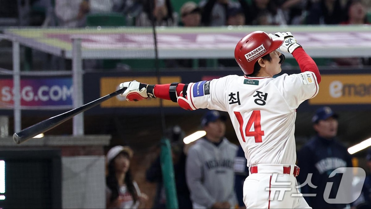 최정은 13일 인천 SSG랜더스필드에서 열린 2025 신한 SOL뱅크 KBO리그 NC 다이노스와의 홈 경기에서 3번 지명타자로 선발 출전해 6회말 2점 홈런을 터뜨려 대기록을 세웠다.