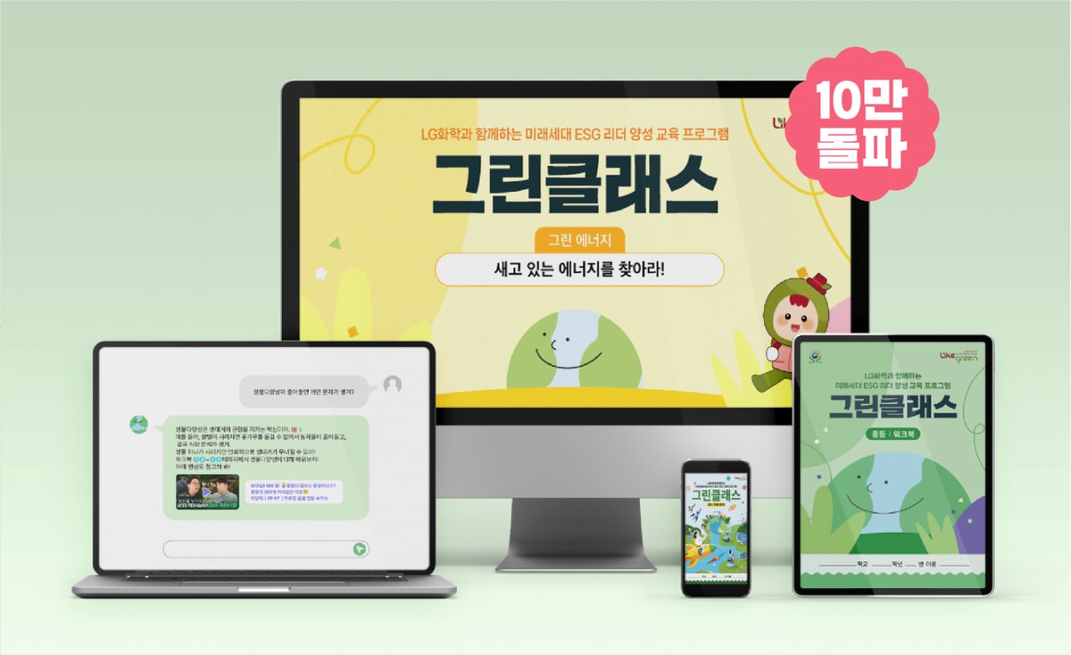 이영준 LG화학 팀장은 "그린클래스가 10만 명의 이용자와 함께할 수 있었던 것은 미래 세대 환경교육의 필요성에 대한 사회적 공감대가 반영된 결과"라며 "앞으로도 미래 사회를 이끌어갈 청소년들이 ESG리더로 건강하게 성장할 수 있도록 지속가능한 사회를 만들어 나가는 데 앞장설 것"이라고 말했다.