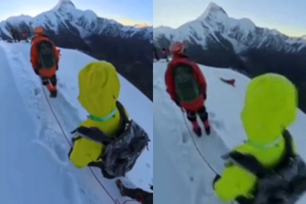 지난달 30일(이하 현지시각) 중국 매체 광명망에 따르면 25일 중국 쓰촨성 나마봉을 등산하던 30대 등산객 A씨가 사진 촬영을 위해 안전 로프를 풀고 일어서려던 순간 아이젠에 걸려 넘어져 사고가 발생했다.