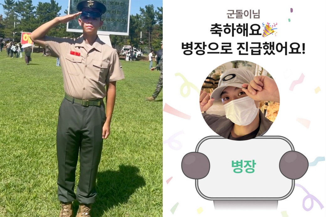 1일 그리는 자신의 인스타그램에 '군돌이님 축하해요. 병장으로 진급했어요'라고 적힌 어플리케이션 화면을 게재했다.