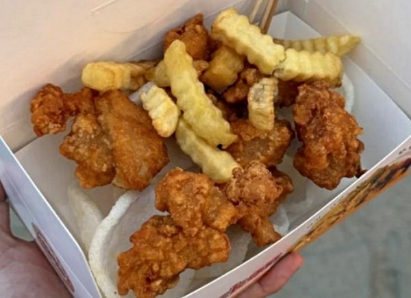 공개된 사진에는 손바닥만 한 종이 용기에 적은 양의 닭튀김과 감자튀김, 알새우칩이 담겨 있었다. 음식의 색은 갓 조리한 음식이라 보기 어려웠으며 양도 적었다. 누리꾼들이 "바가지 아니냐"고 동조하자, A씨는 댓글을 통해 "알새우칩도 손님이 안 보이게 돌려놨다. 양이 너무 적다고 하자 (판매자) 두 분이 버럭버럭하면서 '원래 그러니까 싫으면 2만원짜리 사라'라고 말했다"고 주장했다.