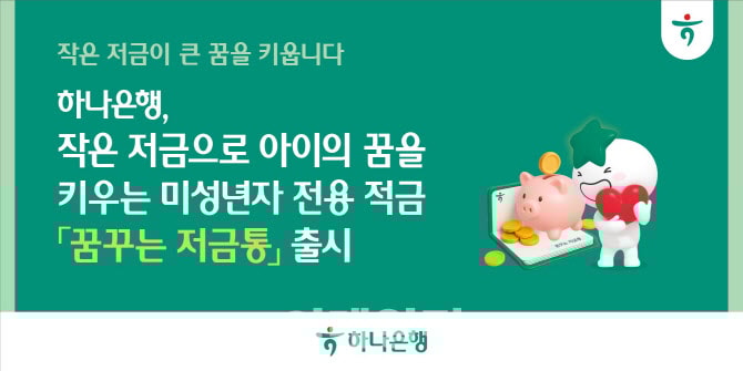 "우리 아이 꿈꾸는 저금통" 하나은행, 미성년 전용 적금… 연 4.0% 제공