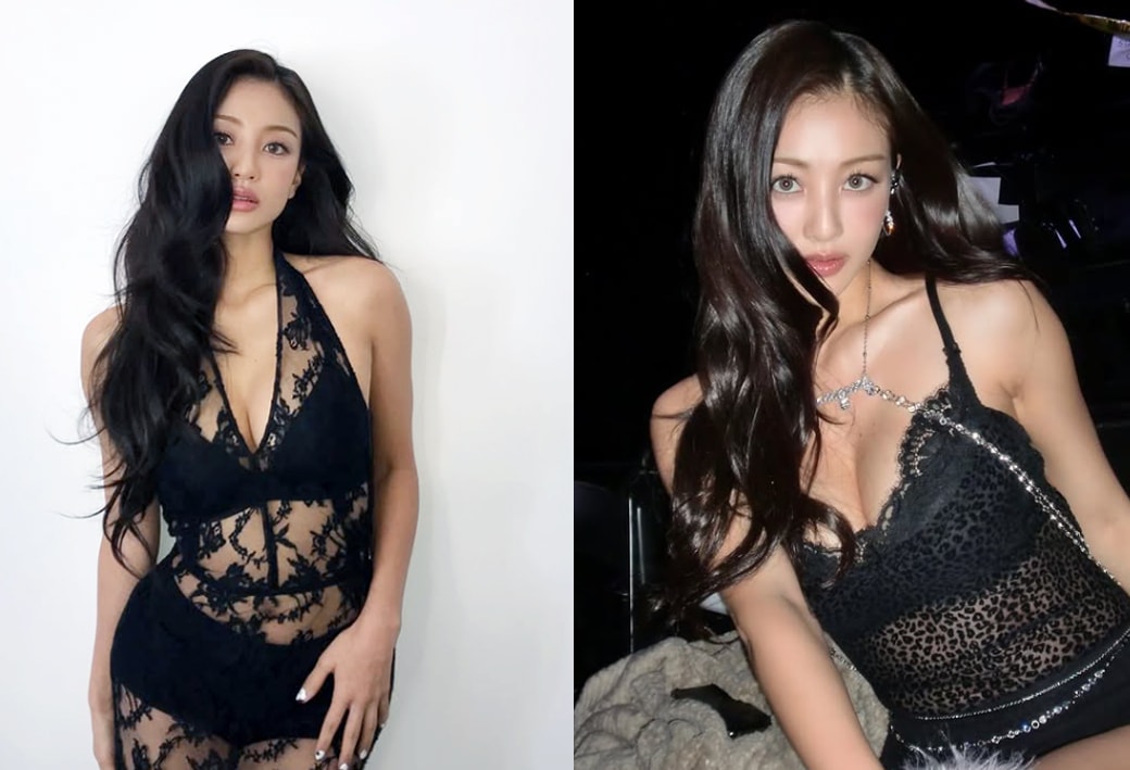 공개된 사진 속 지효는 블랙 시스루 란제리룩을 착용한 채 카메라를 응시하고 있는 모습으로 깊게 파인 네크라인과 섬세한 레이스 그리고 레오파드 패턴은 고혹적이면서 글래머러스한 그녀의 몸매를 부각시켰다.