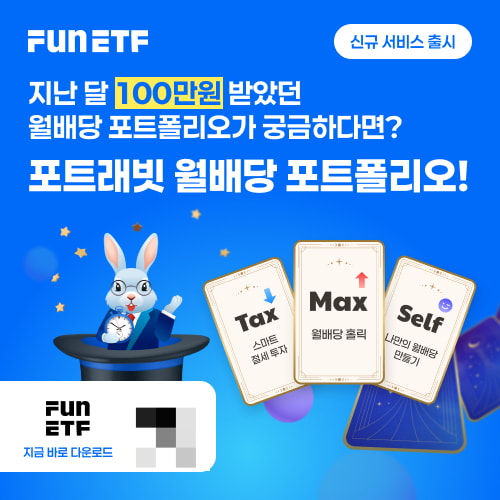 포트래빗은 포트폴리오와 래빗(Rabbit)의 합성어로 급변하는 시장에서 투자자의 수익에 빠르고 효율적으로 대응한다는 의미를 담았다. FunETF 회원이라면 누구나 서비스를 통해 월배당 투자 목적과 배당 성향에 따라 개인 맞춤형 월배당 포트폴리오를 만들고 수익률∙배당률 등을 관리할 수 있다.