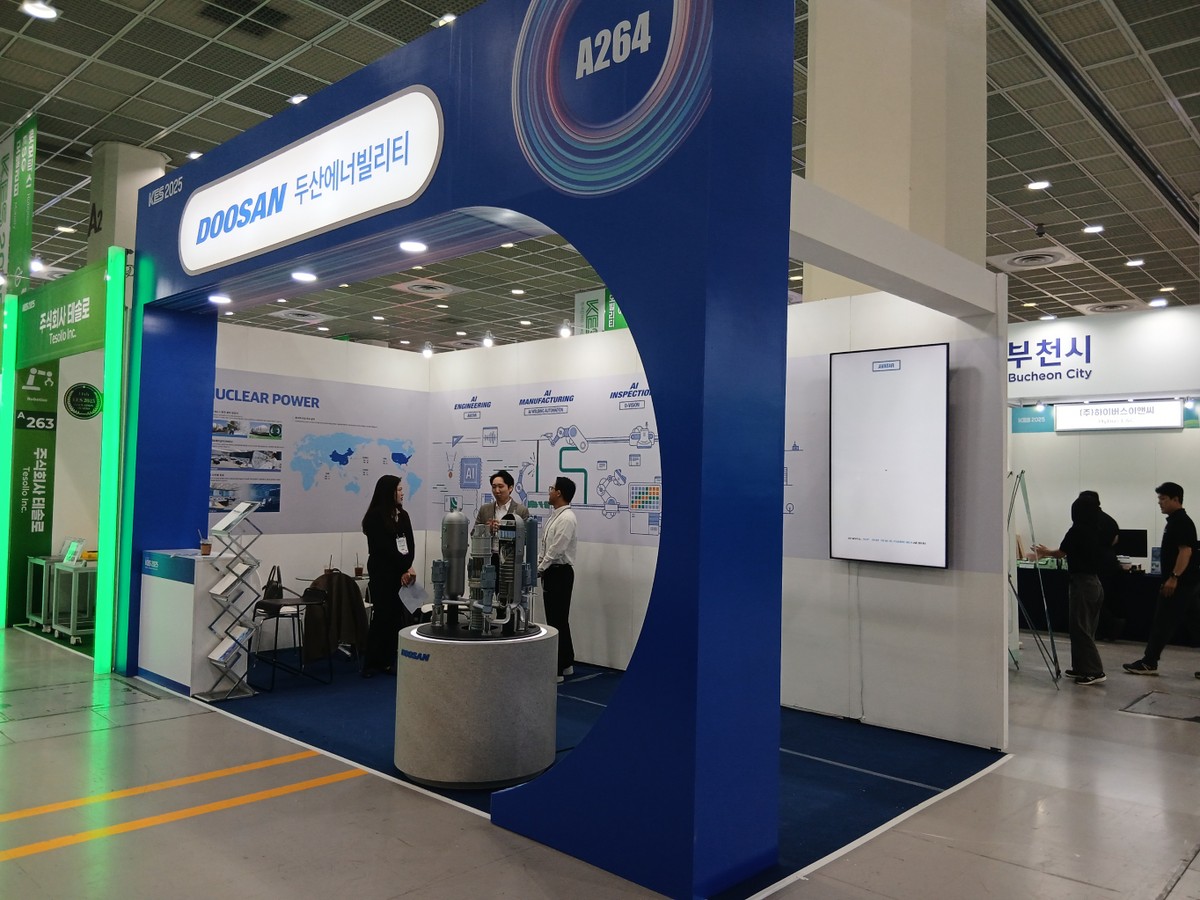 부스는 AI 기술 설명을 위해 설치됐다. 두산에너지빌리티는 AI기술을 활용해 제조 과정 효율을 높이고 있다고 한다. 회사 관계자는 "엔지니어링·제조·검수·관리 등 모든 제조 과정에 AI가 적용된다"며 "공장을 스마트 운영할 수 있도록 돕는 AI솔루션까지 제공하고 있다"고 말했다.
