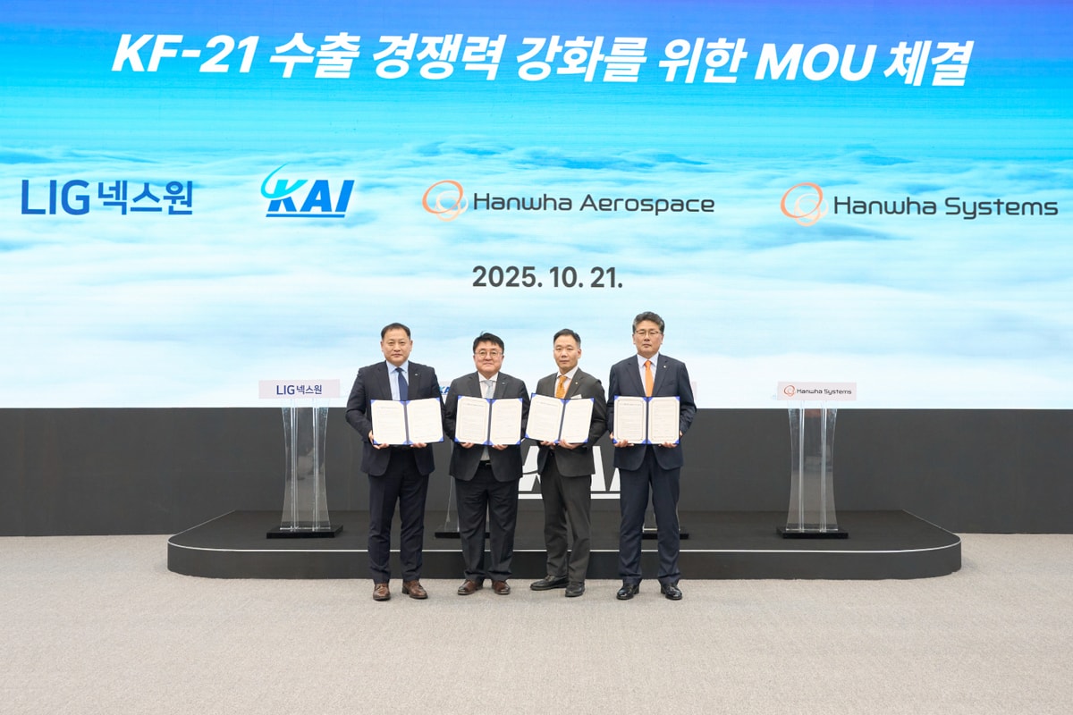 한국항공우주산업(KAI)이 한화에어로스페이스, 한화시스템, LIG넥스원 등 국내 주요 방산 기업 3개 사와 KF-21의 수출 경쟁력 강화를 위한 상호협력 체계를 구축하기로 했다.