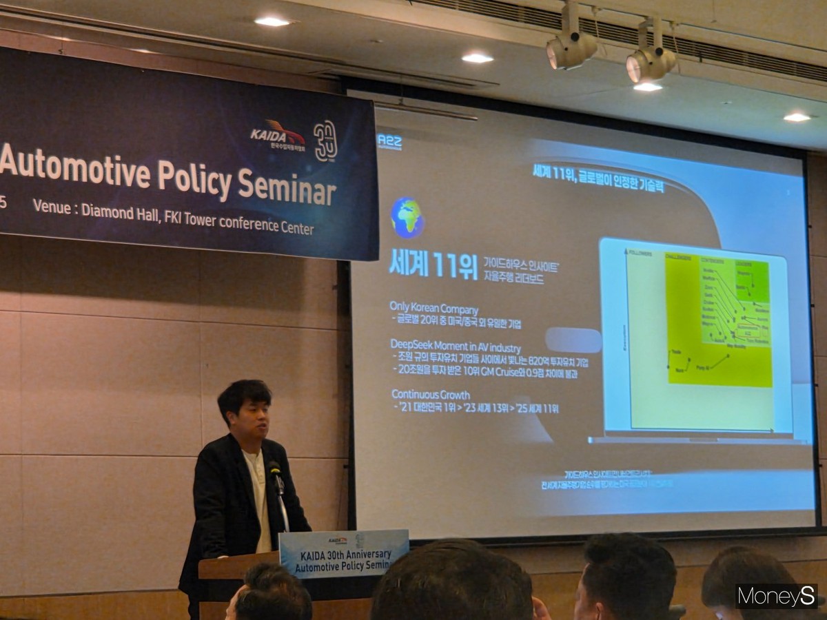 이날 진행된 정책세미나 1부 행사에서는 국내 자율주행 대표 기업 오토노머스 에이투지(Autonomous A2Z)의 유민상 상무가 '자율주행자동차 현주소와 해외사례를 통한 시사점'이라는 주제로 첫 발표자로 나섰다. 유 상무는 주제발표를 통해 "자율주행차 시대로의 전환과 경쟁력 확보는 자율주행차 생태계 기반 조성에 있어 기업과 학계의 연구와 투자와 노력 그리고 정부의 정책적 지원과 유연한 제도 운영 등 관련 자원의 융합과 협력이 첫 단추"라고 주장했다.