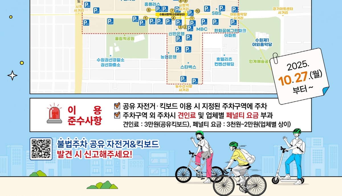 수원시, 공유 자전거·킥보드 지정주차구역 시범운영