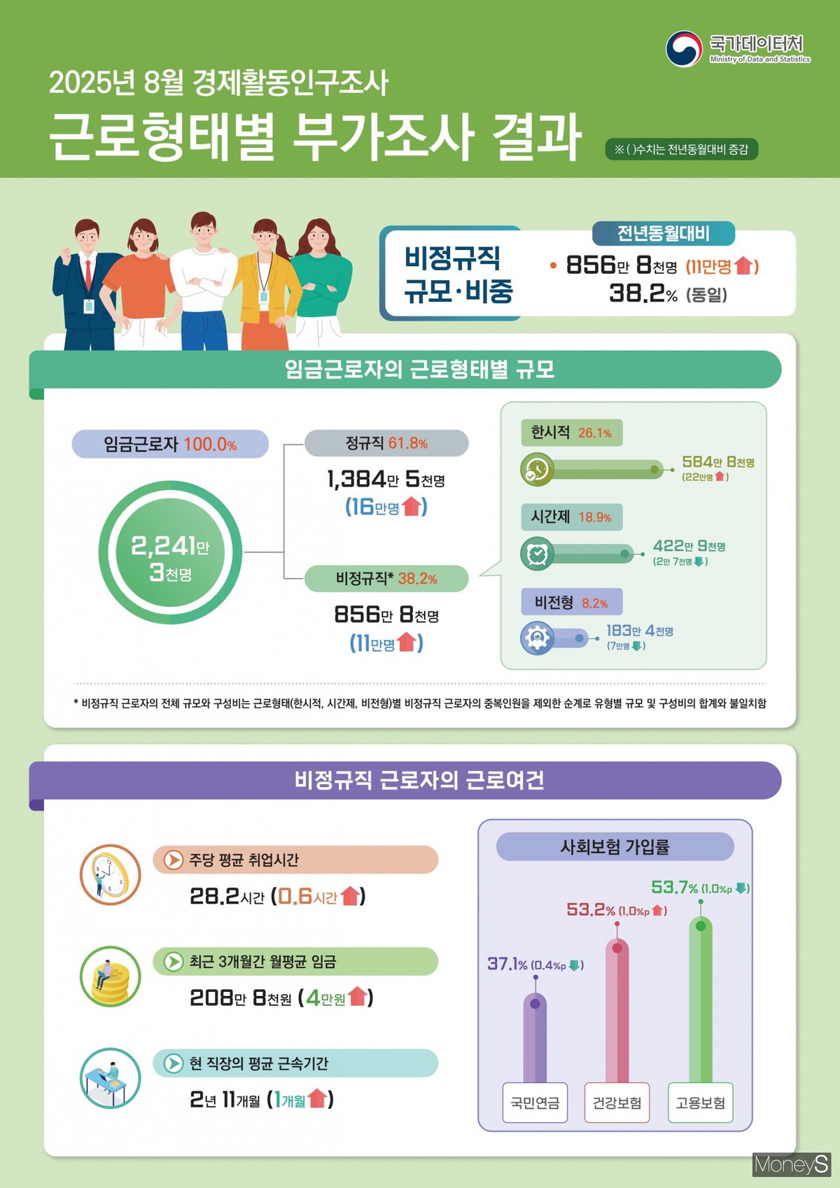 22일 국가데이터처(옛 통계청)가 발표한 '8월 경제활동인구조사' 결과에 따르면 지난 8월 현재 광주지역의 임금근로자 63만3000명 가운데 정규직은 35만4000명, 비정규직 27만8000명으로 집계됐다.