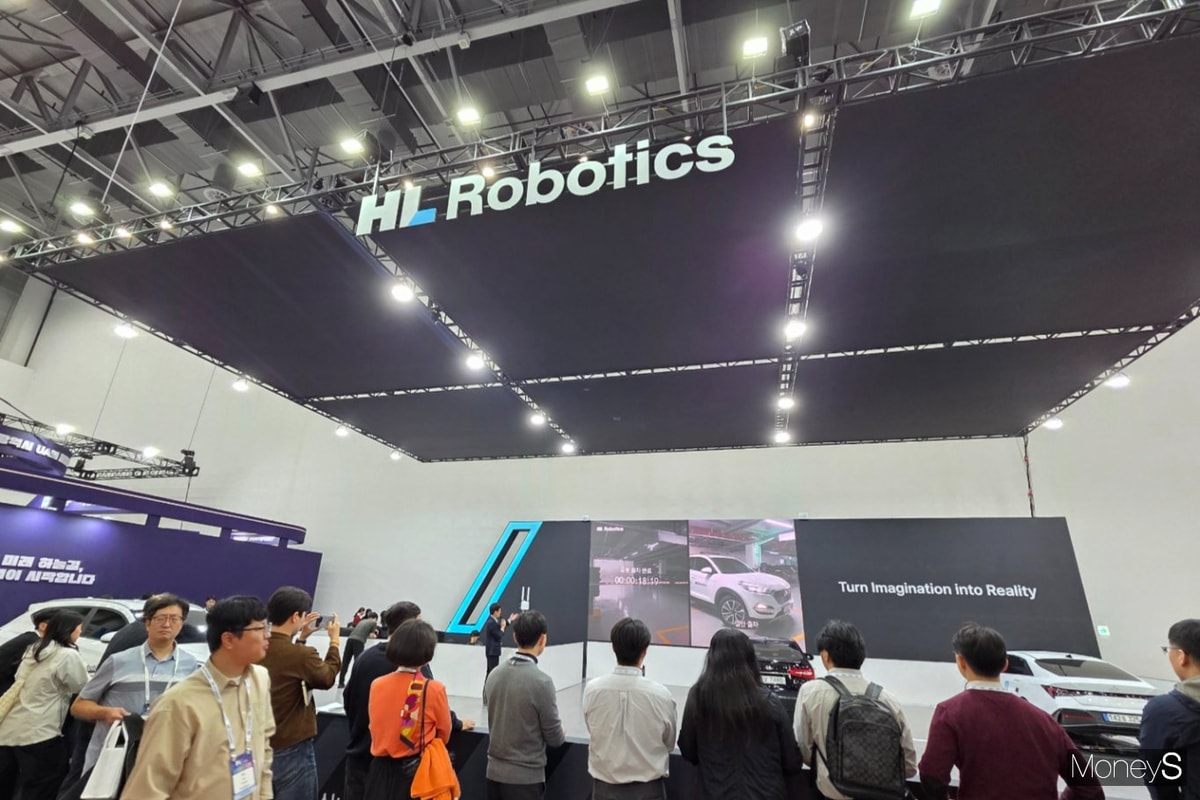 바로 앞에서는 HL로보틱스가 자체 개발한 실내 주차 로봇 '파키'의 시연 영상이 재생 중이었다. 좁은 주차장 통로를 오가며 차량을 정확히 들어 올리는 로봇의 모습에 관람객들은 셔터를 눌렀다.