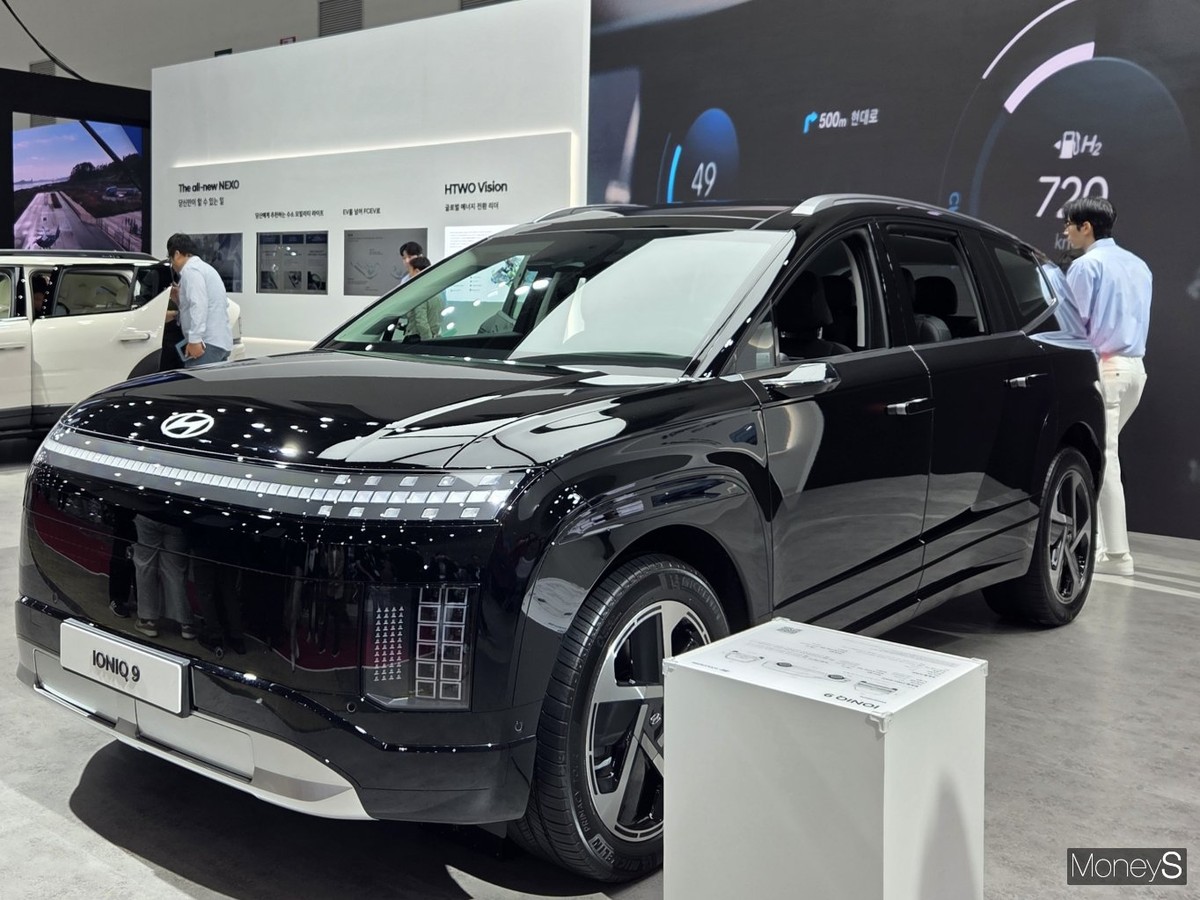 현대자동차 부스는 아이오닉9가 관람객들을 맞았다. 동급 최대 휠베이스를 자랑한다는 설명에 청중들이 연신 고개를 끄덕였다.