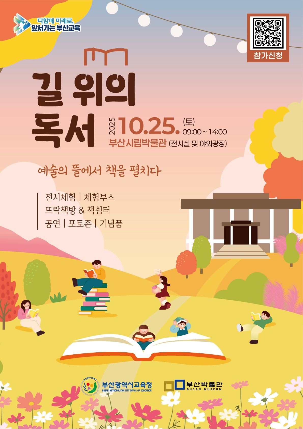 부산시교육청은 오는 25일 부산박물관에서 '길 위의 독서, 예술의 뜰에서 책을 펼치다'란 주제로 야외 독서 행사를 개최한다고 23일 밝혔다. 역사·예술·문화가 어우러진 박물관이란 특별한 공간에서 학생, 학부모, 교원, 시민이 함께 독서의 즐거움을 나누는 자리다.