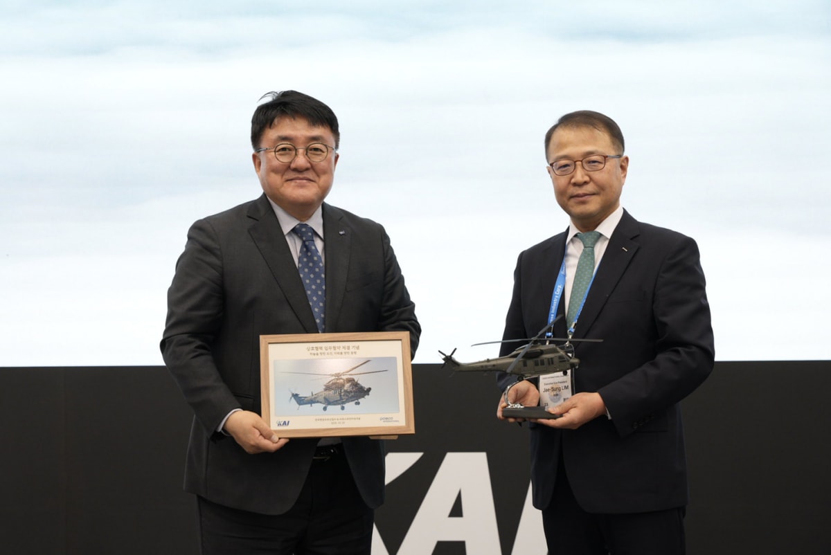 경기 고양시 킨텍스 '서울 국제 항공우주 및 방위산업 전시회'(ADEX) KAI 부스에서 열린 협약식에는 조우래 KAI 수출마케팅부문장과 임재성 포스코인터내셔널 소재바이오본부장 등 관계자들이 참석했다.