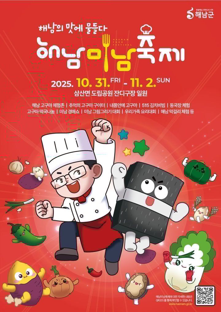 전남 해남군은 31일부터 11월2일까지 삼산면 두륜산 도립공원 일원에서 '2025 해남미남(味南)축제'가 열린다고 24일 밝혔다.